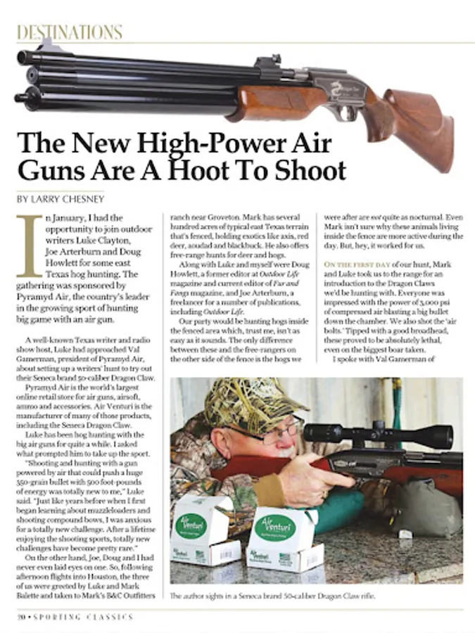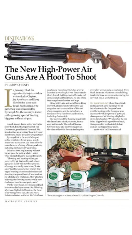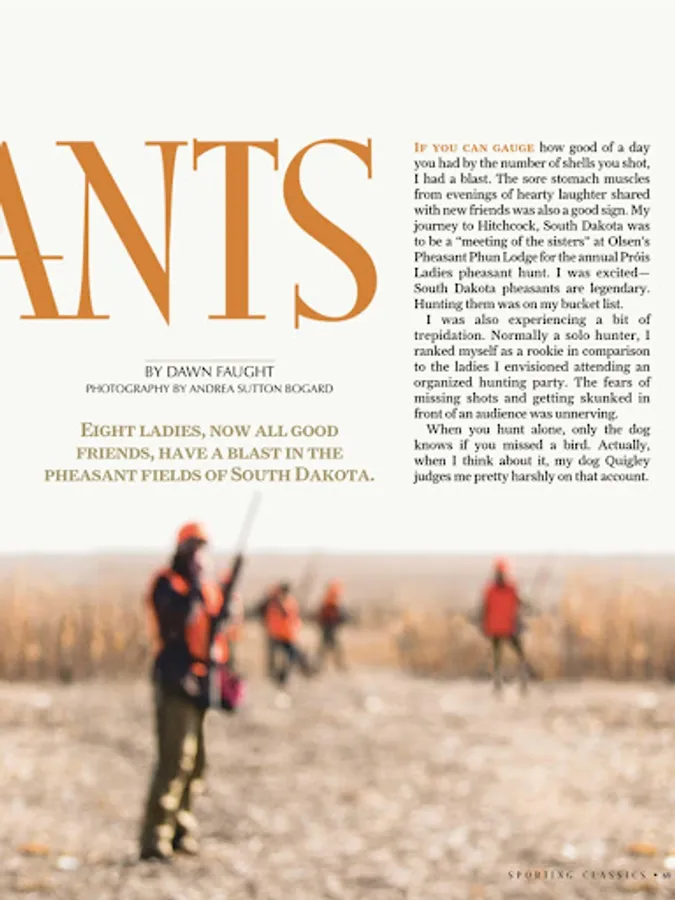 Established in 1981 Sporting Classics is the leading magazine for discovering the best in hunting and fishing worldwide. Written for active sportsmen who love to read, each issue is a big, thick volume packed with stories on all the things you love: guns, knives, adventures, art, dogs, collectibles, and more.Ernest Hemingway, Robert Ruark, Gordon MacQuarrie, Gene Hill, Nash Buckingham and dozens more of our favorite authors from yesteryear help us introduce the rich heritage of hunting and fishing literature to new generations. Likewise, modern day authors like Mike Gaddis, Ron Spomer, Todd Tanner, Jim Casada, Doug Painter, Tom Davis, Roger Pinckney and Jamison Parker continue this age-old tradition of incredibly powerful stories.