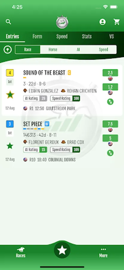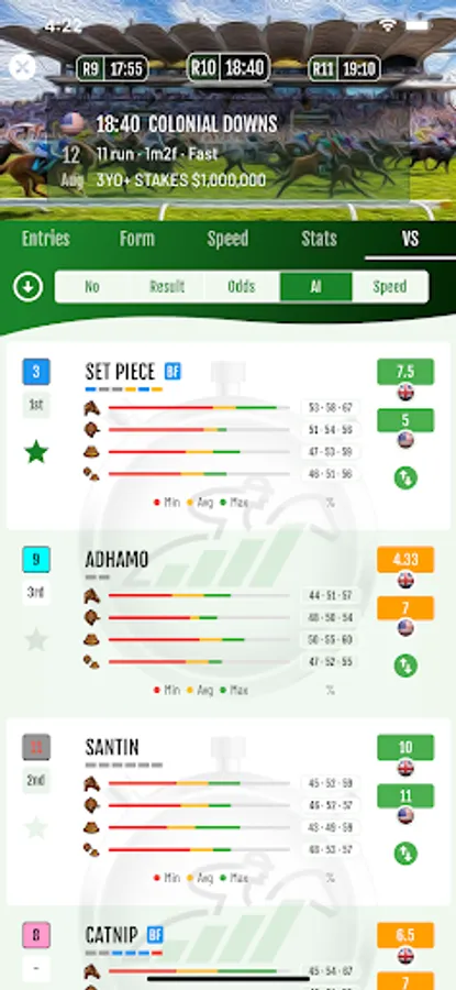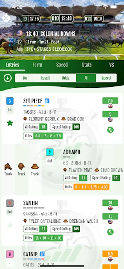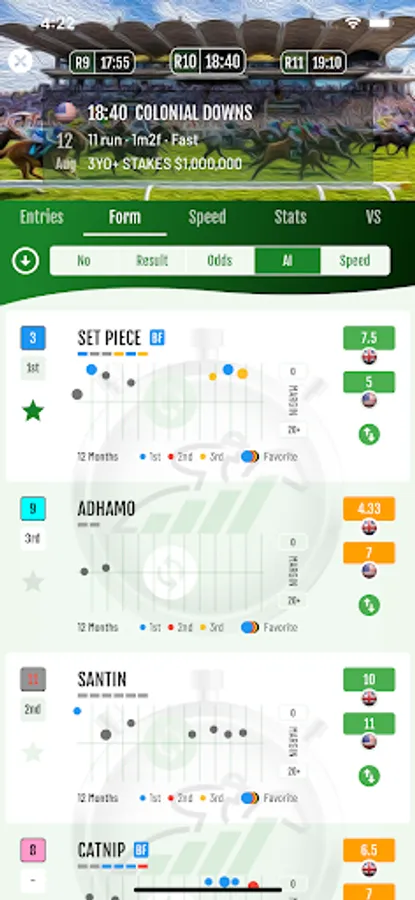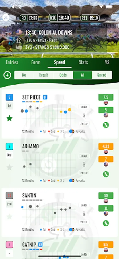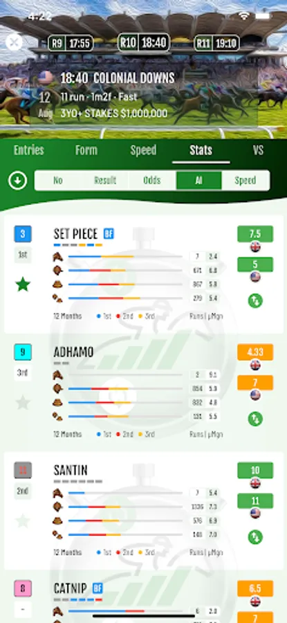 Daily race entries, form, speed, statistics & versus charts, AI picks & ratings, speed ratings, live multi-region odds & fast results for the world's best horse racing.