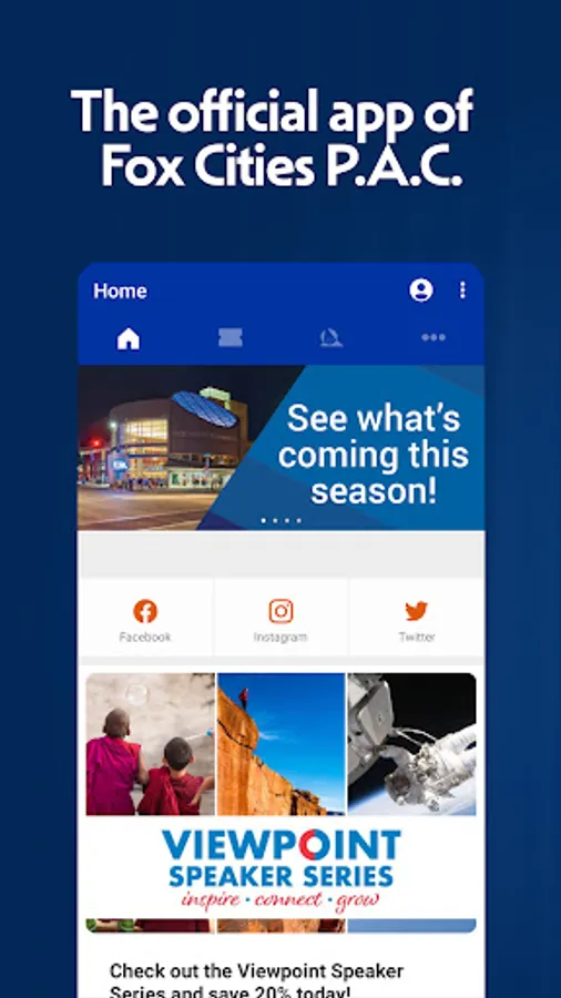 The Fox Cities Performing Arts Center is pleased to share the FCPAC app! With the aid of the app, patrons may now connect their account for mobile ticket access and entry at the Fox Cities P.A.C. In addition, this app also provides information and links to make the most of your visit to the Fox Cities P.A.C. including information on planning your visit, parking, pre-ordering drinks & refreshments, accessibility services, and more. You can also see the full event lineup, purchase tickets, learn about community engagement & education initiatives, and read our health & safety policies.