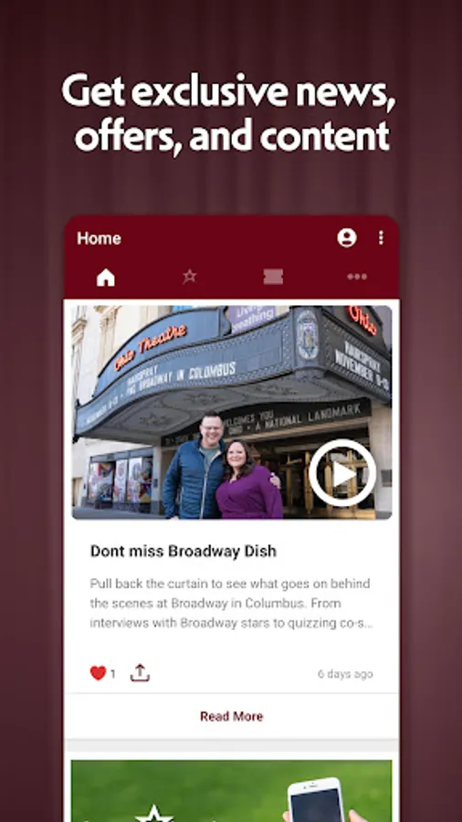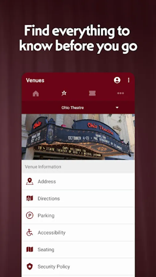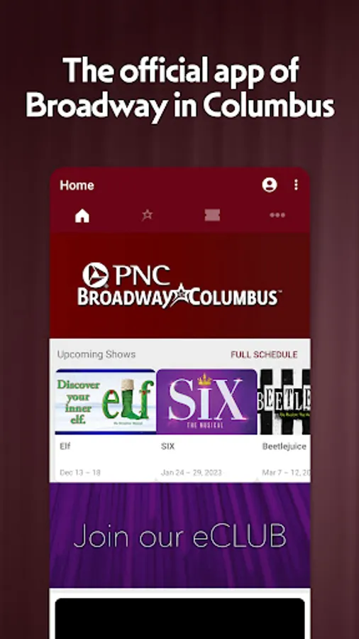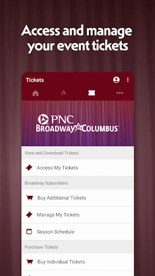 Broadway In Columbus (BIC) is proud to offer an app for ticket holders to manage all ticketing needs, access show updates, and even purchase tickets. Users can link their Ticketmaster account to BIC to allow for seamless mobile entry into each show at the Ohio or Palace Theatres. Season subscribers can access all subscriber resources, such as purchasing additional tickets, exchanging tickets if a conflict comes up or accessing their invoice at renewal time.