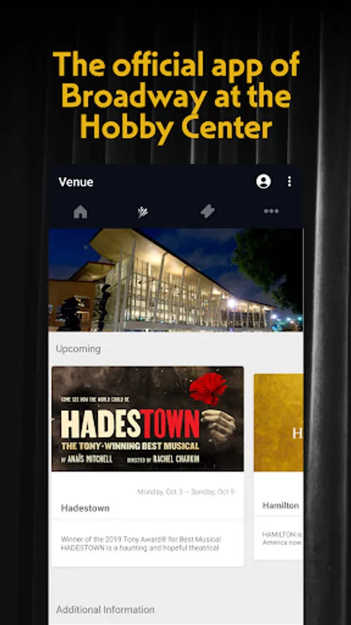 Enhance your Broadway at the Hobby Center experience in the palm of your hand! With the official Broadway at the Hobby Center app, you can easily download your tickets, utilize subscriber benefits, and access exclusive behind-the-scenes Broadway extras.