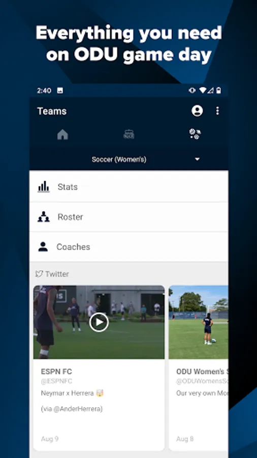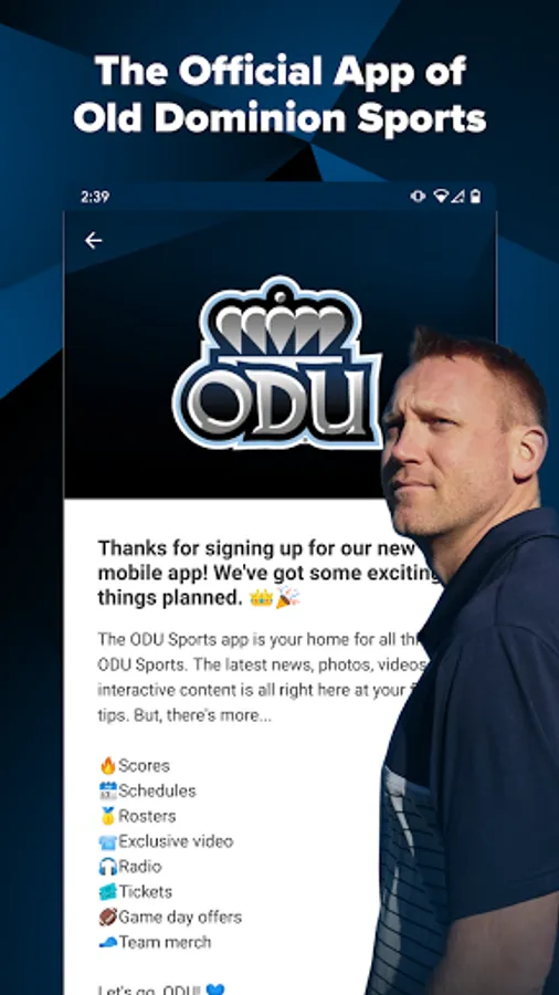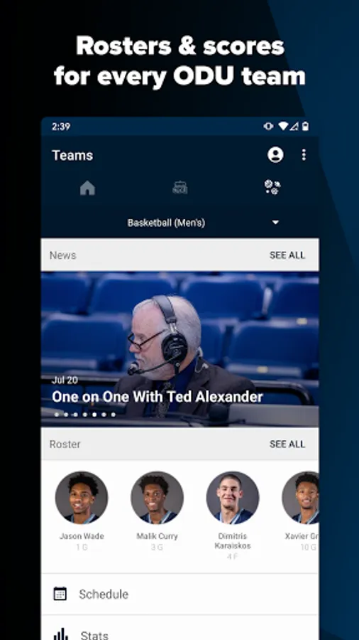 ODU Sports 360 lets you follow all ODU sports teams in one place. Get rosters, real-time stats, schedules, news and videos directly from the source. Listen to live radio broadcasts, no matter where you are.