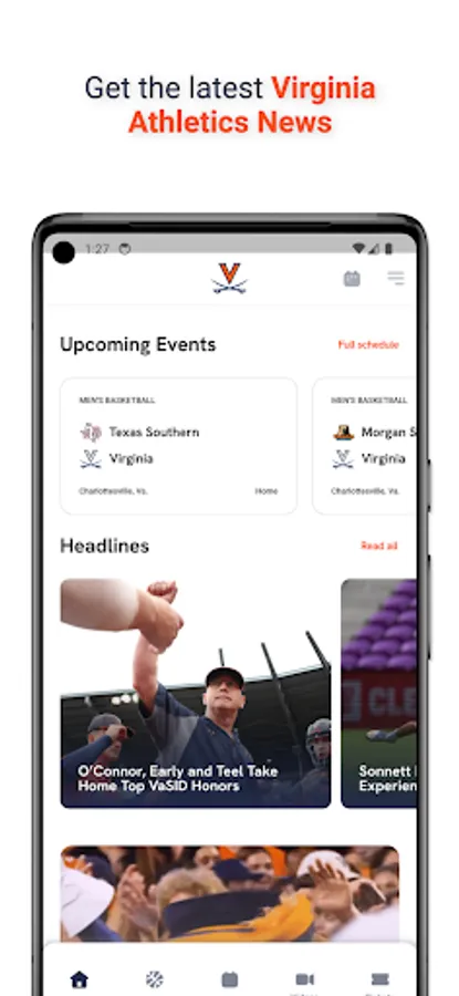 The Virginia Sports mobile app is your direct connection to the Virginia Cavaliers. In this one-stop shop, you can access all the latest scores, stats, rosters, schedules and more on your favorite teams. Looking for a ticket to an upcoming game? We have you covered. Get all the latest video content here or tune into a live radio broadcast no matter where you are. Don't miss a moment of the action for all things UVA Athletics!