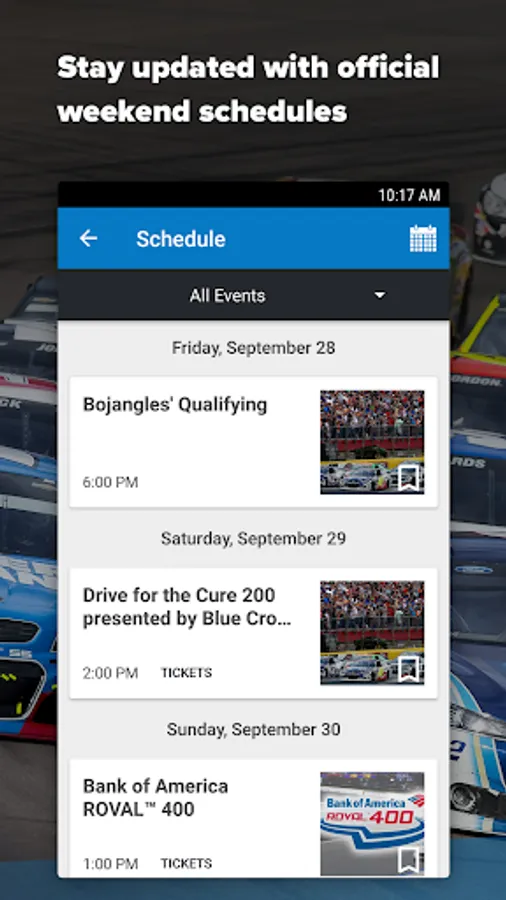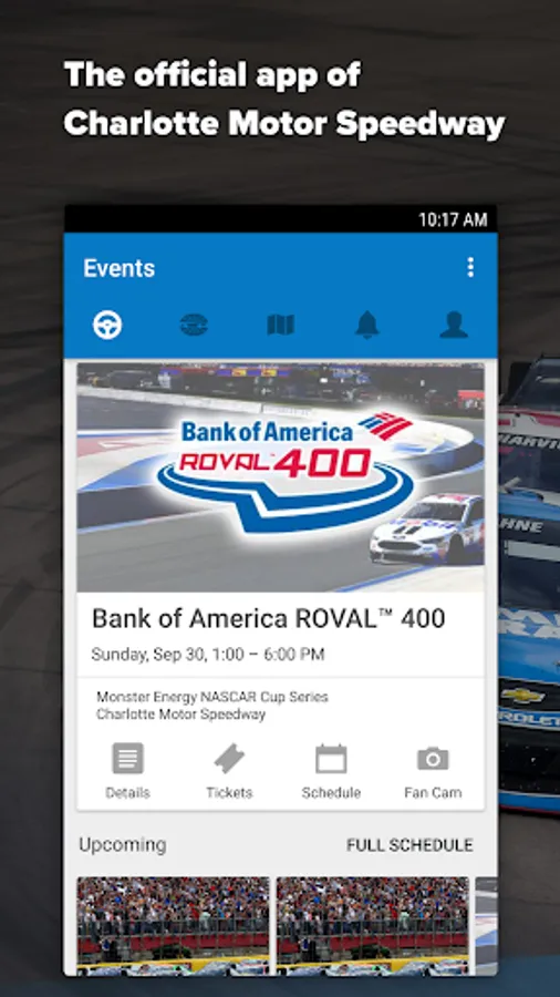 Welcome to the official app of the Charlotte Motor Speedway, bringing fans closer to the action and enriching your event experience. Get all the info you need for race day and beyond, plus exclusive content, and personalized offers and experiences. This is a mobile experience to help you find what you love whether it’s event information, special access, or offers and discounts. Powered by Uphoria.