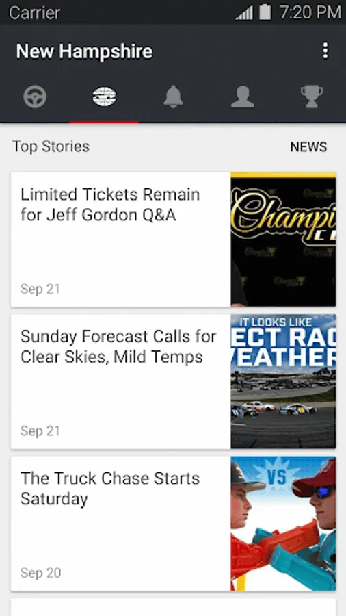 Welcome to the official app of the New Hampshire Motor Speedway, bringing fans closer to the action and enriching your event experience. Get all the info you need for race day and beyond, plus exclusive content, and personalized offers and experiences. This is a mobile experience to help you find what you love whether it’s event information, special access, or offers and discounts. Powered by Uphoria.