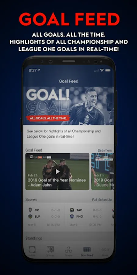 • Don't miss a single banger lighting up the scoreboard with real-time highlights featuring every goal from across the USL Championship and League One