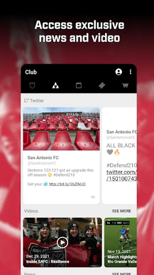 -View and interact with San Antonio FC's Twitter feed right in the app