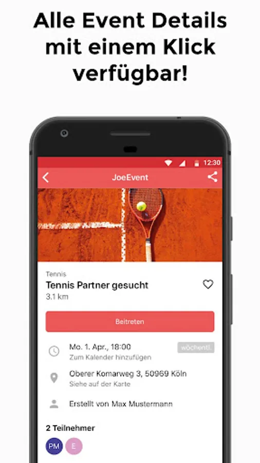 With SportJoe you can plan and create your own personal sports meeting (JoeEvent) and find sports partners at your current location. Create a short profile and select your favourite sports. You can either search for planned JoeEvents in your sport or actively plan your own JoeEvent. Meet sports partners via SportJoe at pre-determined public or private sports facilities and get started - anywhere, anytime. Questions can be answered quickly and easily via the chat function. Join the SportJoe community today!