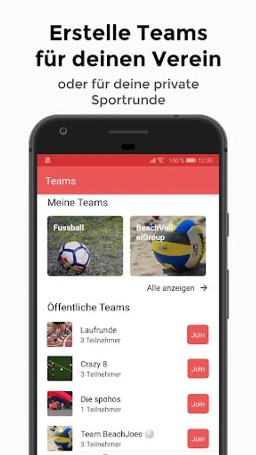 - Create public or private teams (e.g. for clubs and privately organised sports groups)