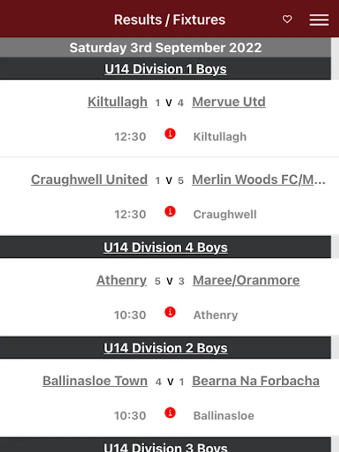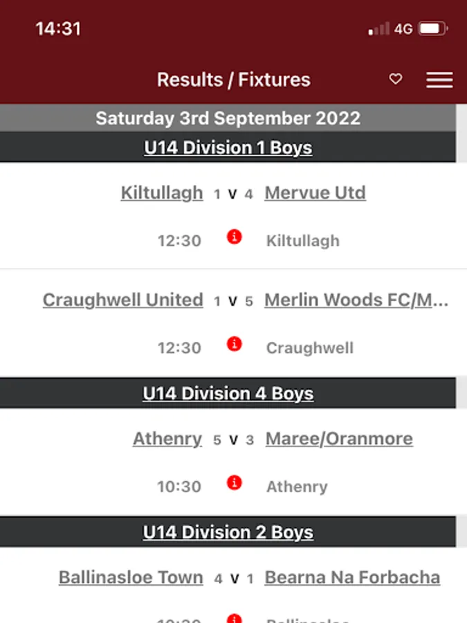 Get the latest fixtures and results from Galway Football. View results and fixtures for your favourite clubs and competitions. View competition league standings. Add clubs and competitions to your favourites for easy reference. Find game details such as team sheets and game locations. Add a fixture to your phone calendar through the app for an easy reminder.