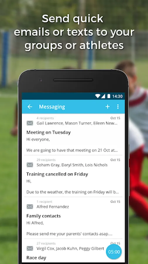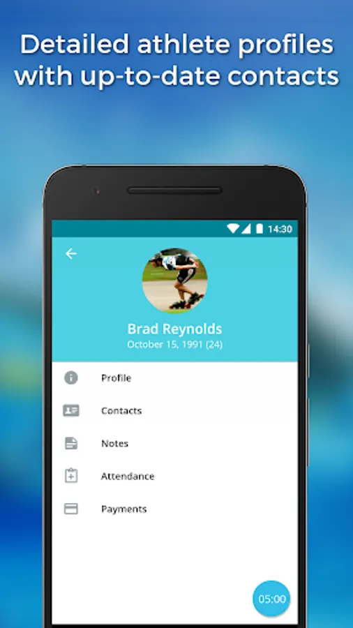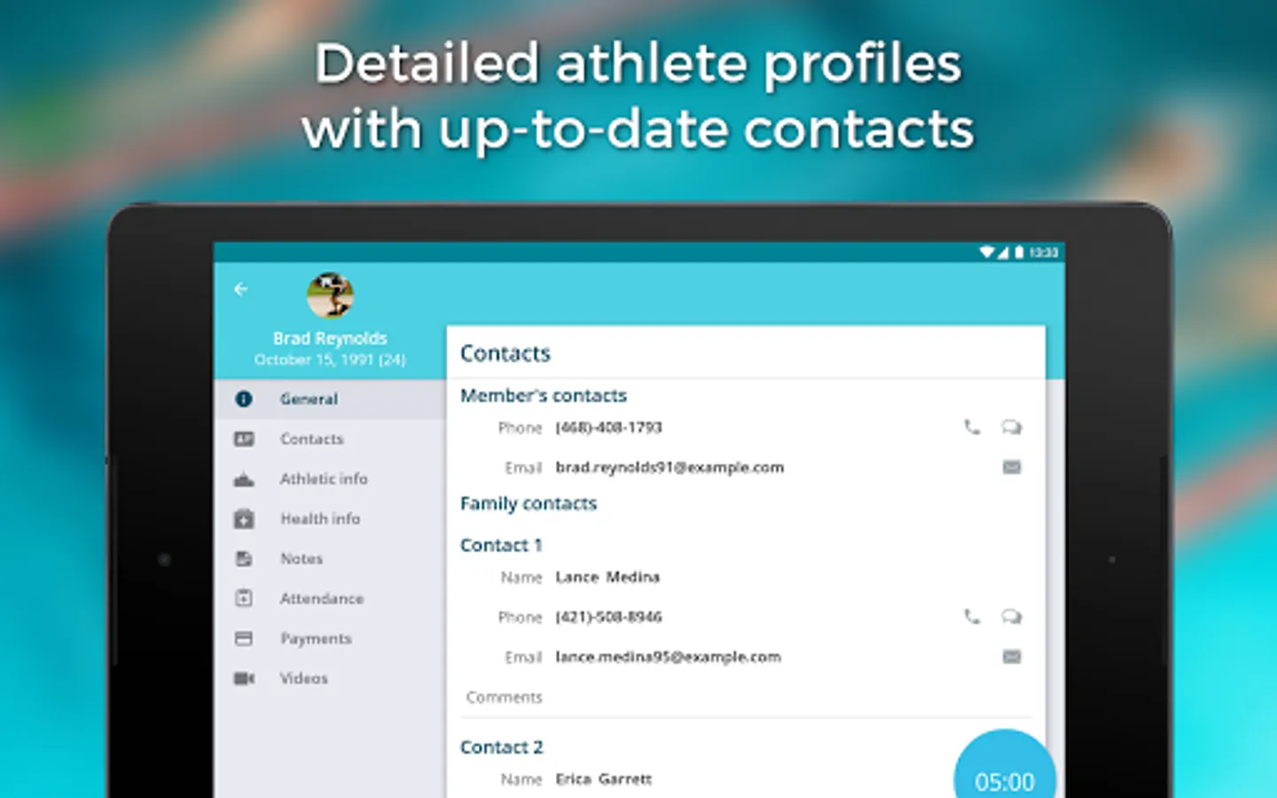 • Manage athlete profiles – all your athletes' data and family contacts are always synced.