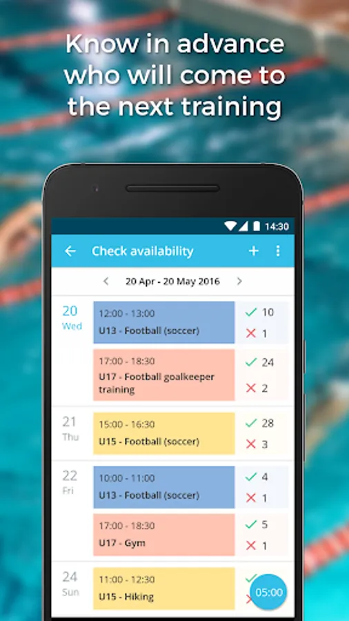 • Check availability – check who can or can’t come to a practice, game or the season end party.