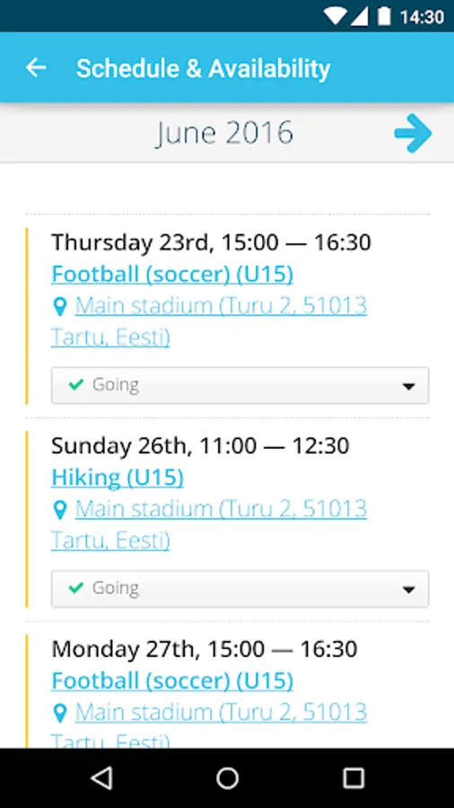 • Organize carpooling - see who else has RSVP-d to a workout or game and contact them easily