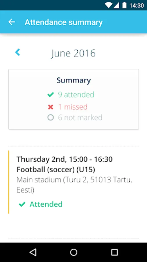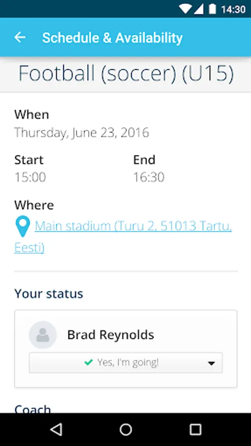 You don't have to contact the coach each time you want to know how your kid's training is going. The Parent App gives you a good overview of training schedules, attendance, coach's contacts, etc.