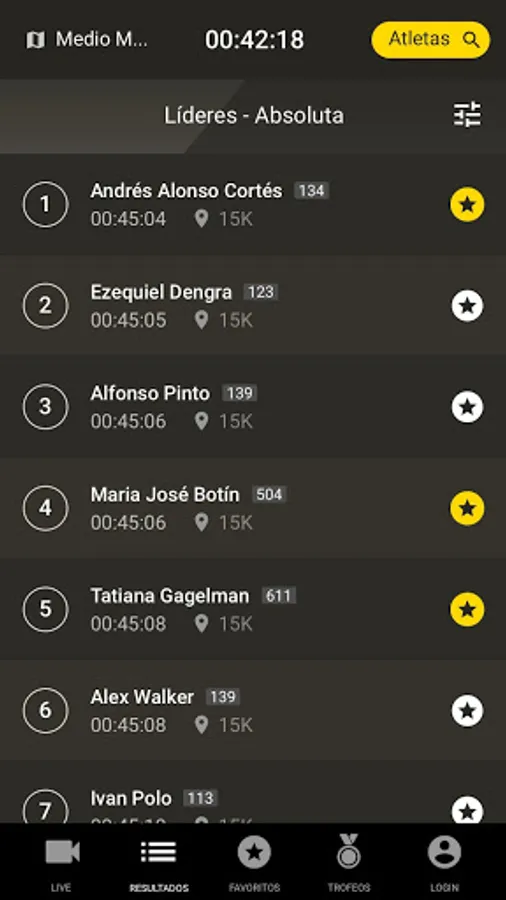In addition, you can quickly see any classification instantly: by categories, averages and the last point reached from the participants you follow.