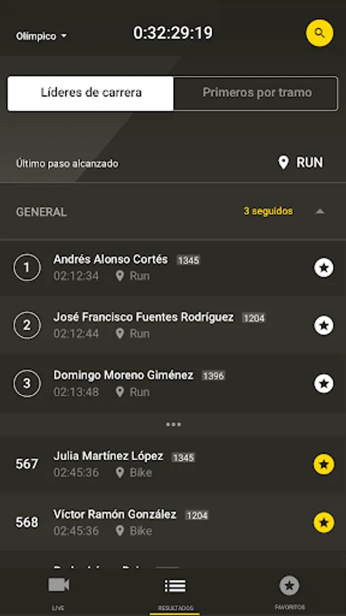 From the official app you can check all the rankings and the best athletes at each control point.