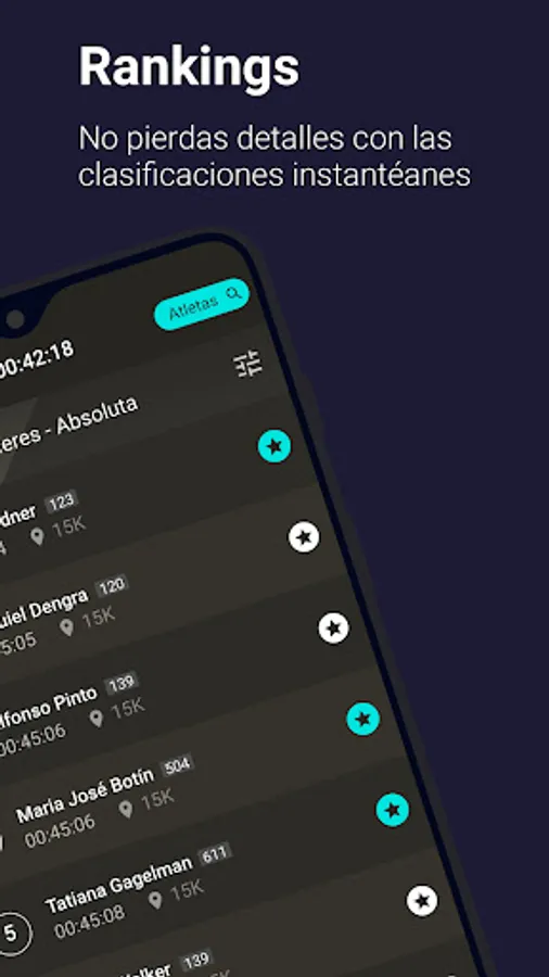 You will have access to the instant rankings of the events: general ranking, by gender and by age categories.