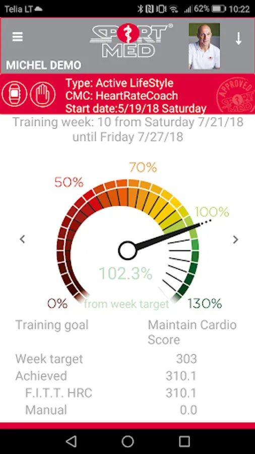 The cardio program that was put together by your SportMed Cardio-trainer or coach or your Fitness Essentials Cardio-instructor is uploaded to the app so that you always have an overview of the objectives and status per week. All your training efforts are presented in detail.