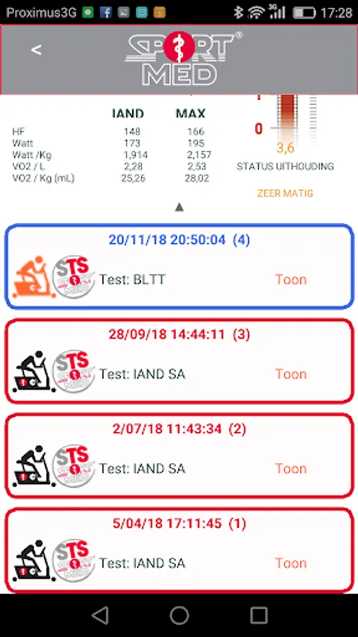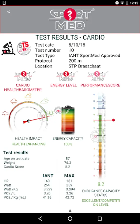 In the app you always have a complete history of your former stress tests available. You will also find other test results of measurements that you have completed with your SportMed Cardio-trainer/ oach or Fitness Essentials Cardio-instructor.