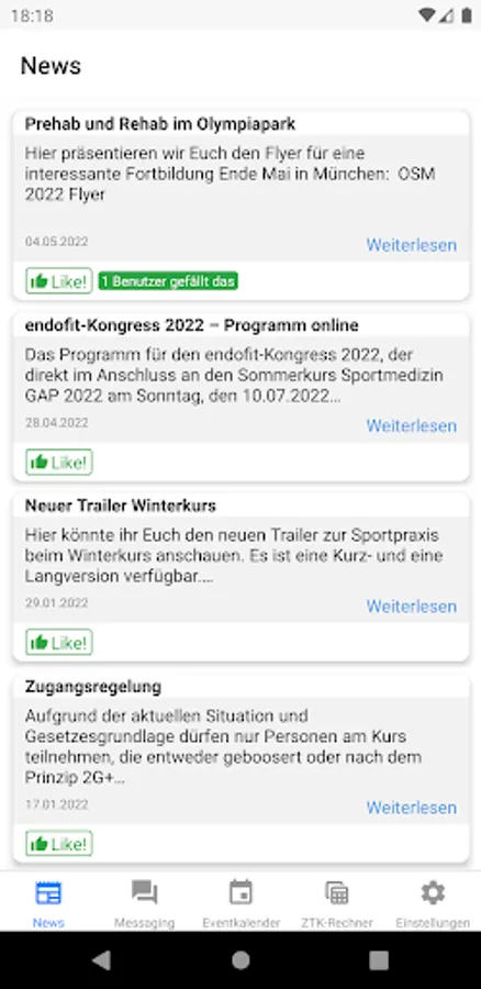 Each sports medicine event can have its own event entered. Live voting functions and your own social media access (photos/videos/text) are available for the duration of the course. In addition, the current program can be updated in real time by the administrator or viewed by the participant.