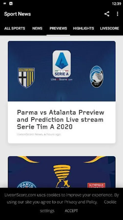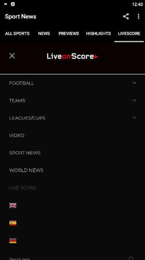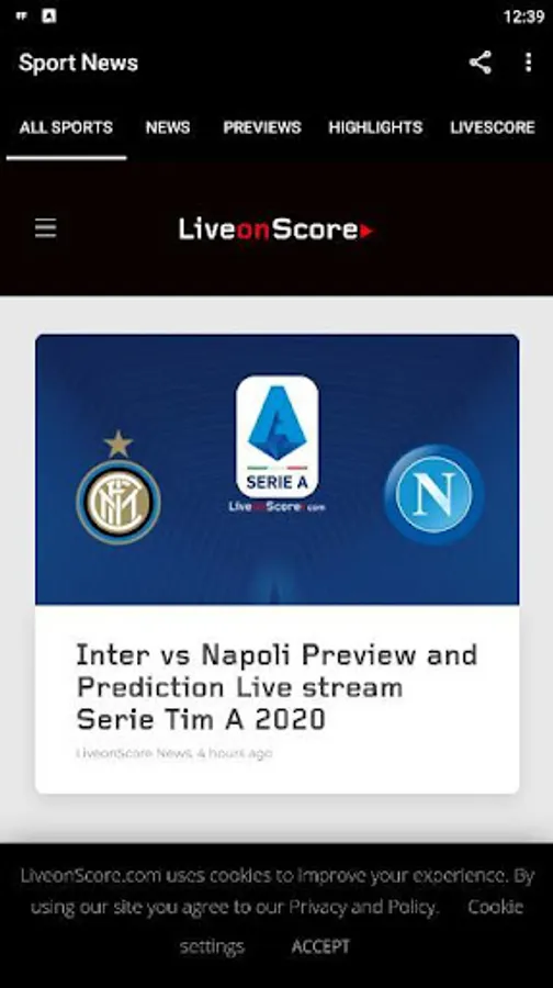 - Live Score with the results of live football matches