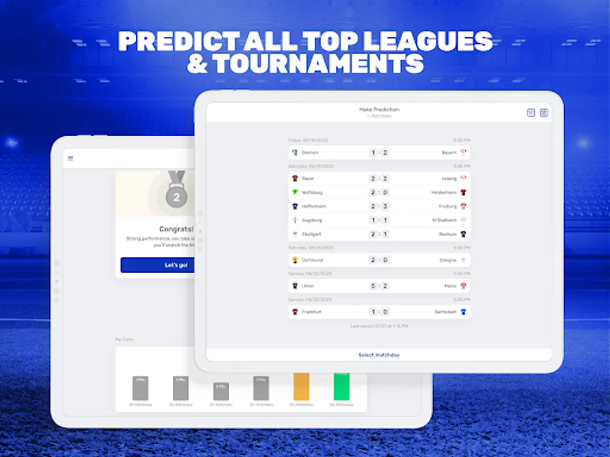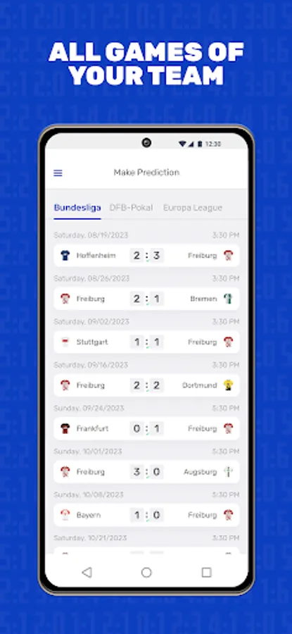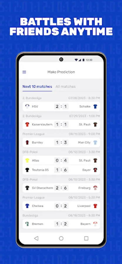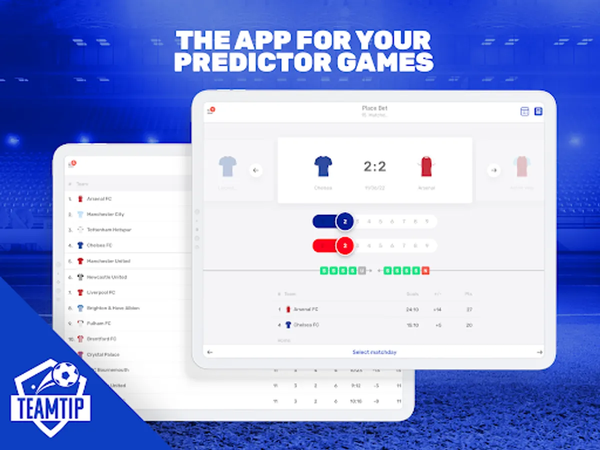 Challenge your friends, family or work colleagues and get the prediction game king. With TEAMTIP, you can predict classic competitions or just the matches of your favourite team, as well as create individual battles with selected matches. Predict on the top European leagues, international tournaments or an individual selection of matches.