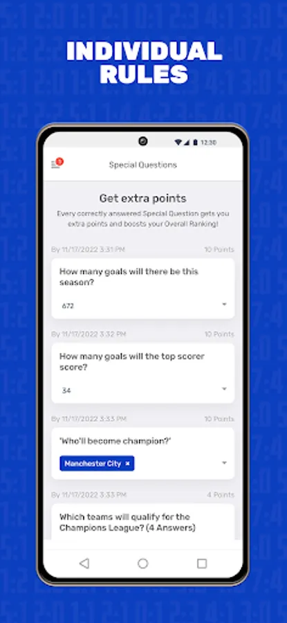 Predict the whole season of a league or the entire tournament. You can choose between European top leagues and international tournament highlights.