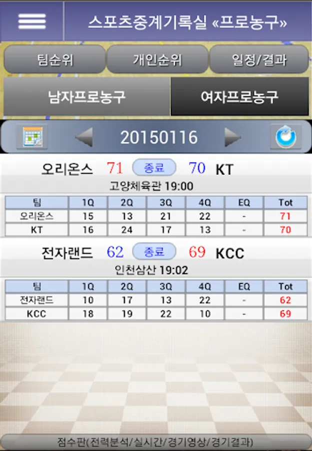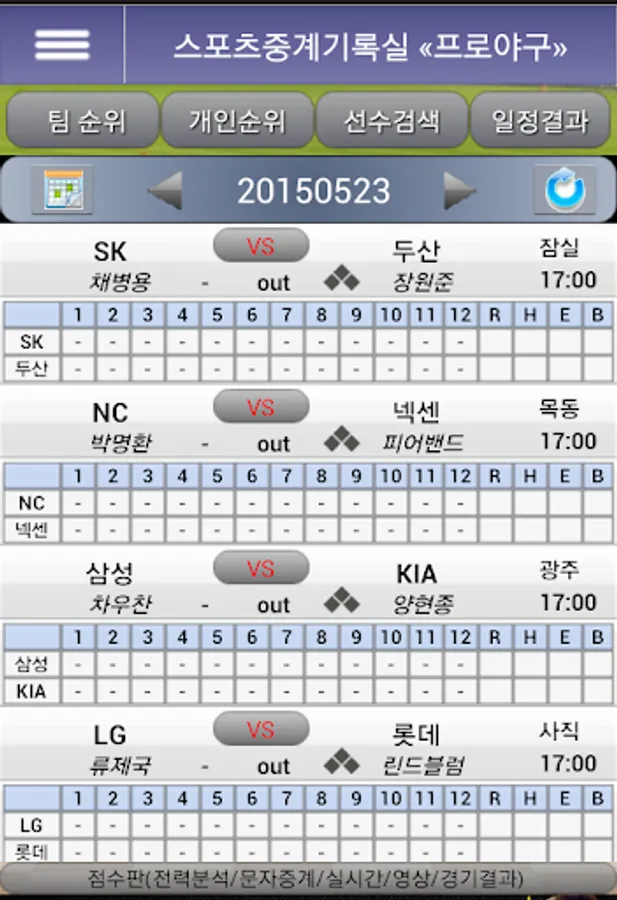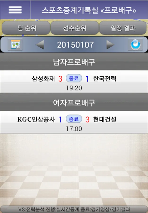 Pro Baseball Professional Football Pro Basketball Pro Volleyball NBA's Real Time Score Board Team Ranking Individual Ranking Schedule Results Power Analysis Match Results Competition Team Information You can check team information.