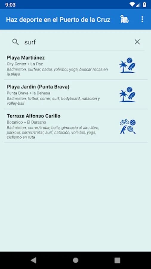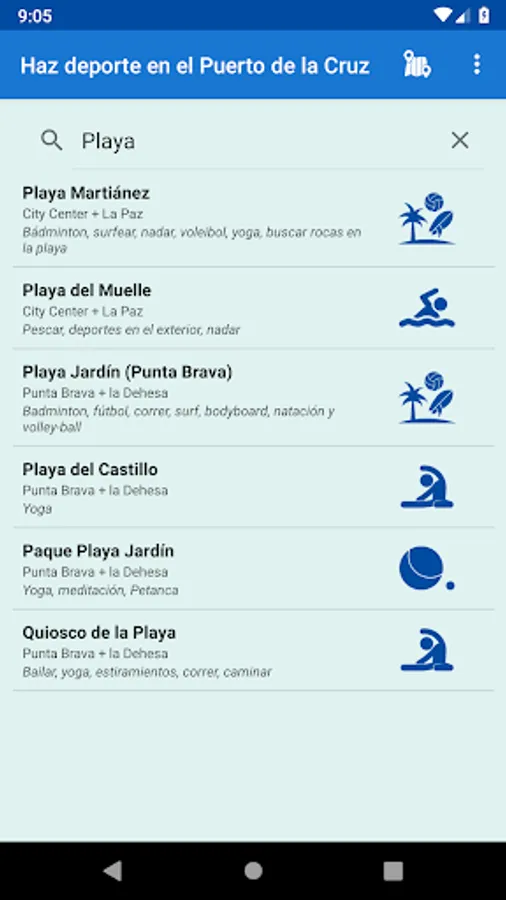 An easy to use tool for all the sports fans who live in Puerto de la Cruz or are just passing by.