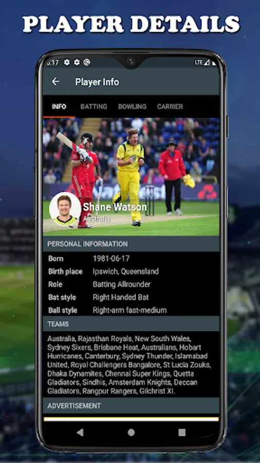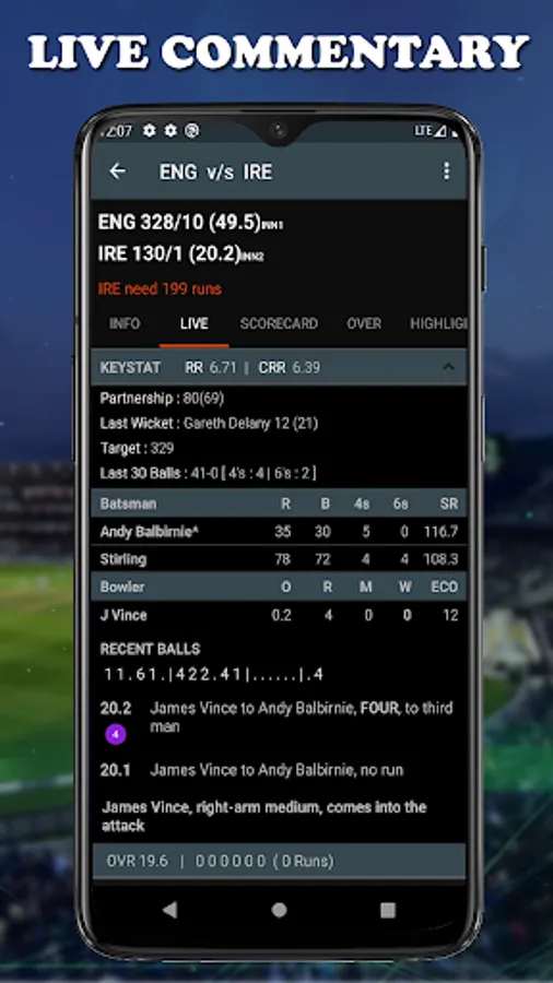 ➣ live commentary of each & every ball in details.