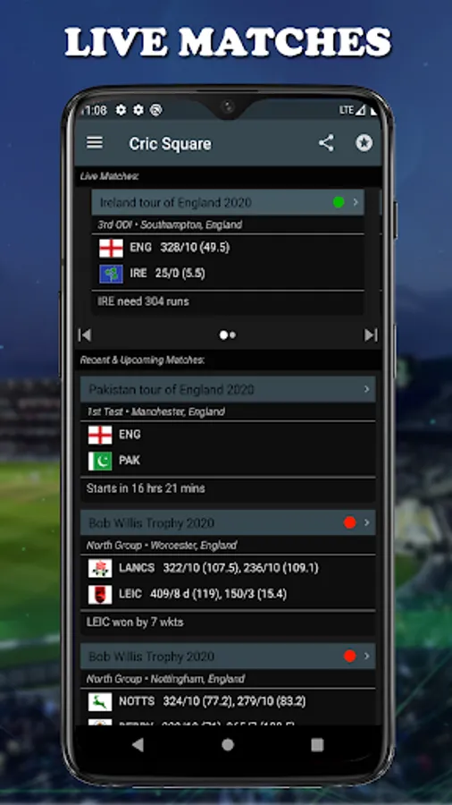 Cric Square - Live Cricket Scores is an Android application designed for getting fastest updates for all live cricket matches, real-time score, upcoming schedules & much more. If you are cricket lover, then we have designed perfect cricket app