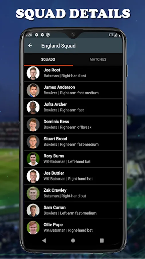 ➣ squad details of each match.
