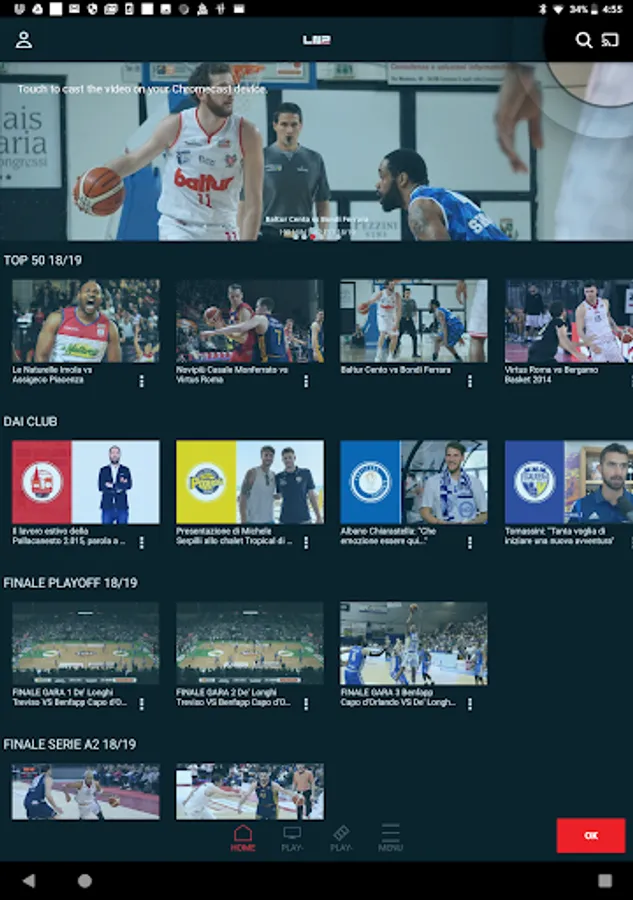 All Serie A2 and Serie B of Italian basketball live and on demand