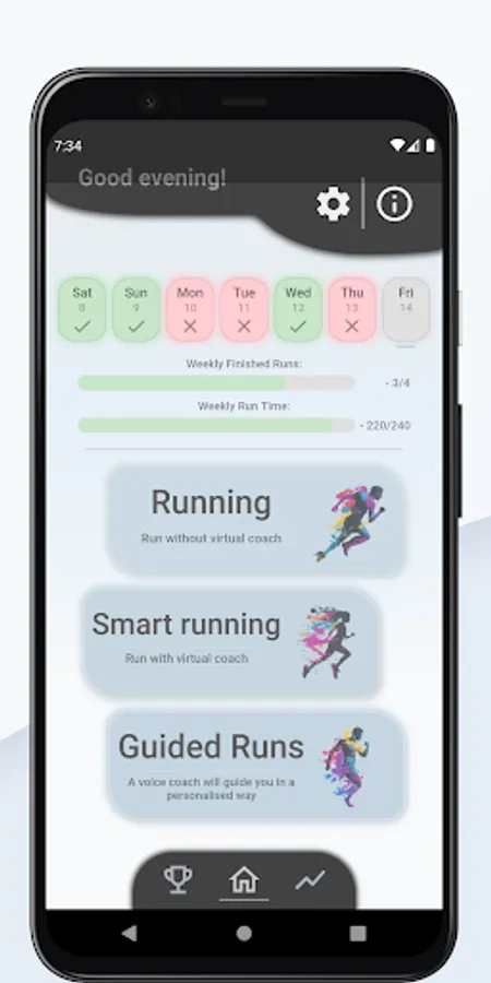 - Casual running with a professional running tracker that is based on a simple and minimalistic modern theme