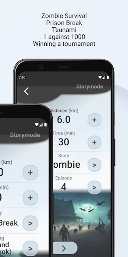 - Storymode: Solve objectives while running with a story: Zombie Survival, Prison Break, Tsunami, 1 against 1000 and Winning a tournament (all stories will be personalized for your own running pace)