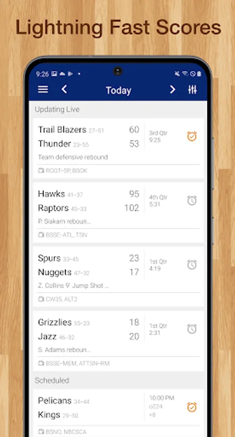 • Live NBA scores and real-time boxscore stats keep you in the action.