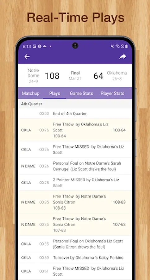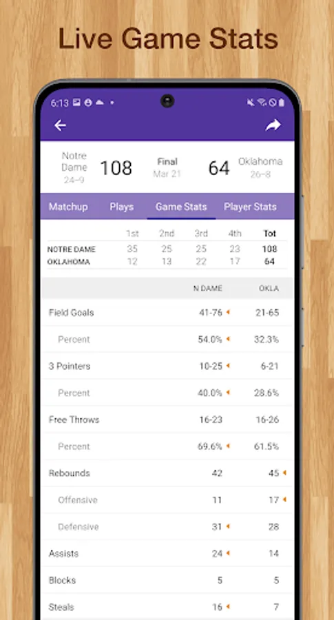 Tired of cluttered sports apps? Want lightning fast women's college basketball scores and real-time NCAAW basketball game alerts? Look no further!