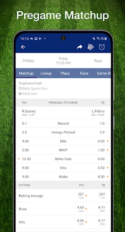 * Game preview includes probable pitchers, batting lineups, & teams matchup stats!