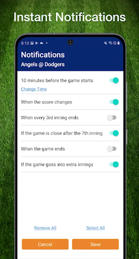 * Immediate game notifications for scores, close games, extra innings, and more!