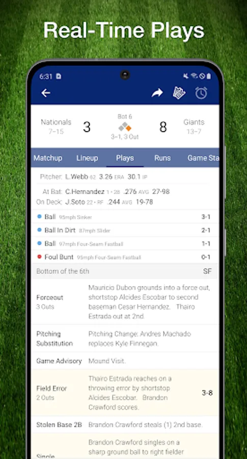 * Live MLB scores & real-time plays & pitch count keep you on top of the baseball action!