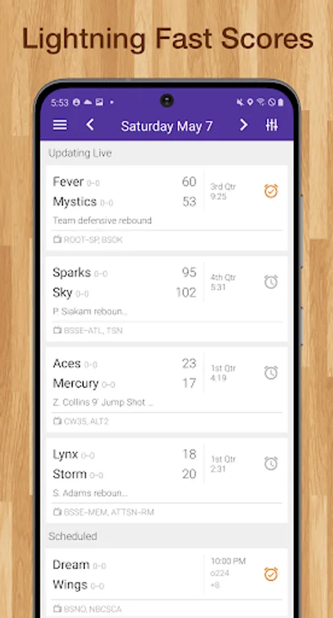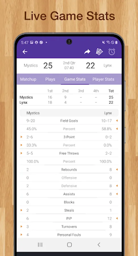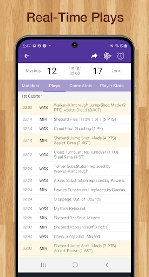 * Live WNBA scores & real-time plays keep you on top of the basketball action!