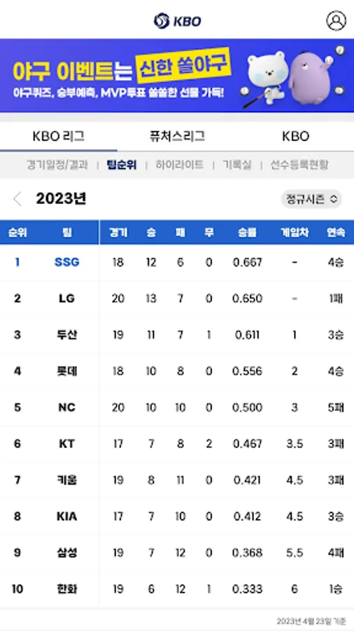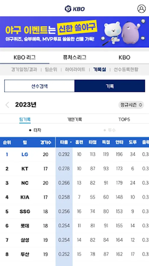 KBO, the official Korean professional baseball app