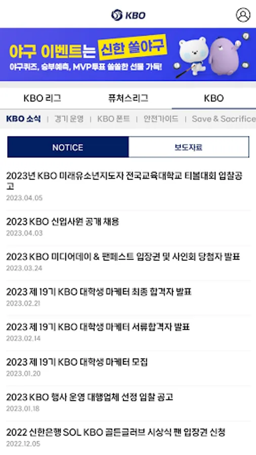 The KBO app is the official app of the Korea Baseball Organization (KBO).