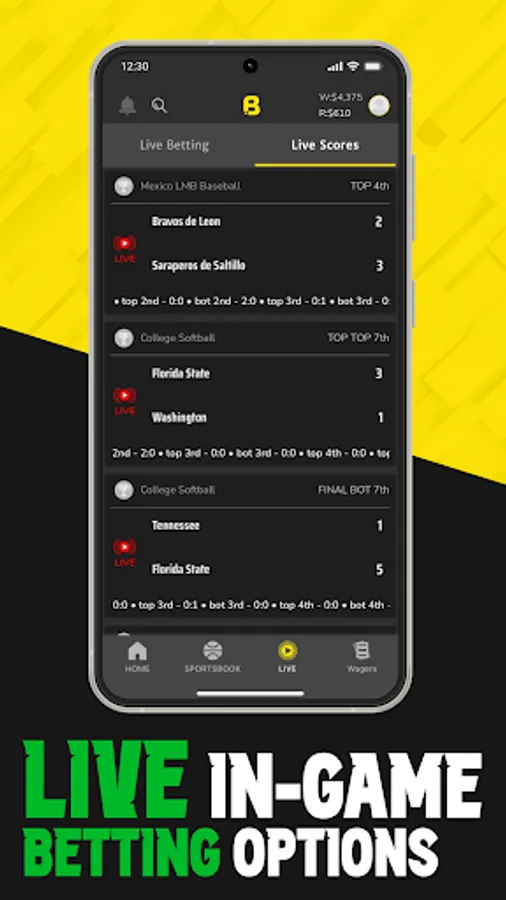 β’ Place bets with our LIVE In-Game feature to place wagers throughout the game!