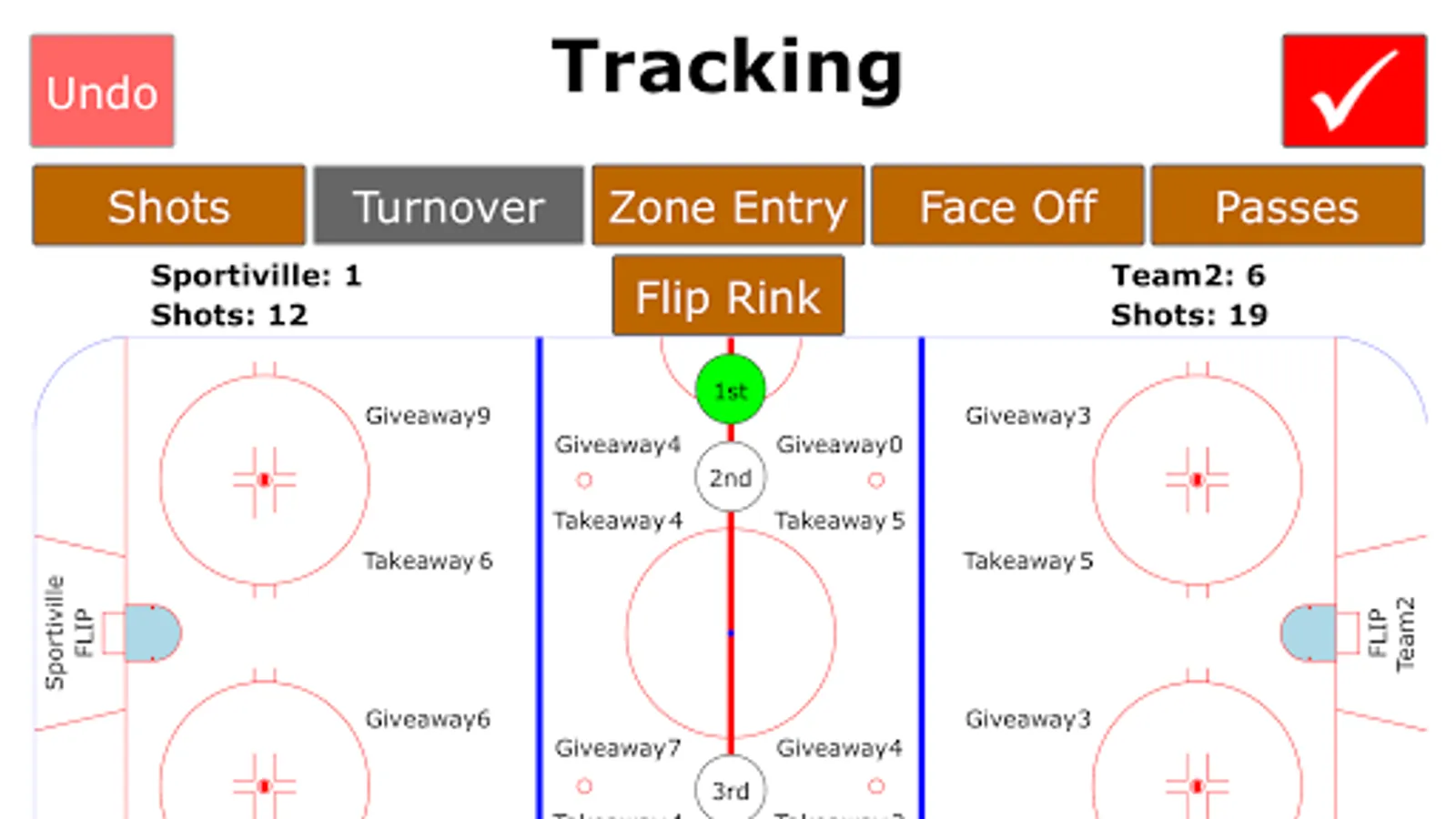 Use the Turnover Tracker to capture giveaways and takeaways for players or your team as a whole in eight zones on the ice.