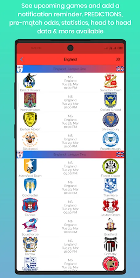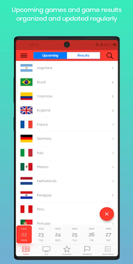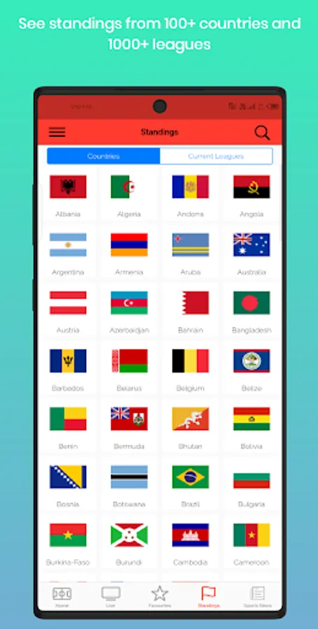 Never miss a football game as the matches are organized in countries and by leagues. Set notifications to remind you when the match is about to start.