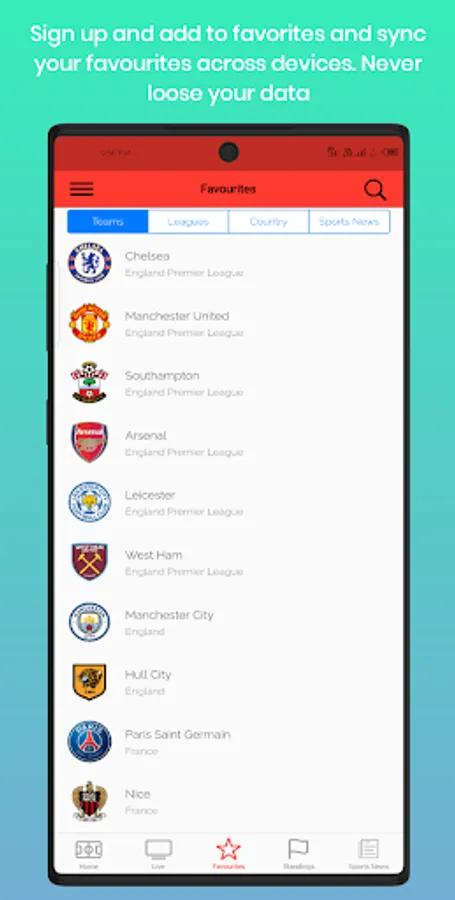 Add your teams, leagues and country to favorite. You can save locally on your phone(no account needed) or sign up and save your favorites online and sync it between all your Android devices.