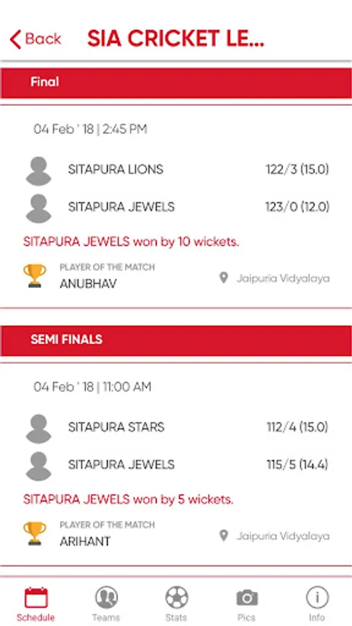 Live Ball to Ball Scores for Sitapura Industrial Association Cricket Matches and Tournaments.