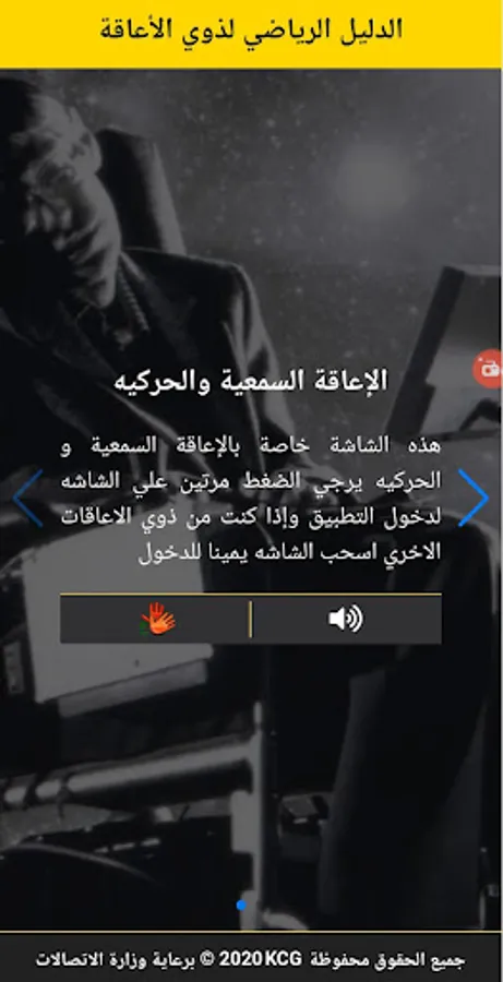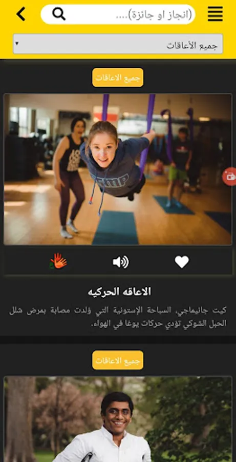 Application that contains sports appropriate for different disabilities, and the most important sport news for people with disabilities in addition to champions around the world with disabilities, this application is highly available as it can be used easily by the blind through the department of the blind and used by other disabilities including deaf to make it available in sign language