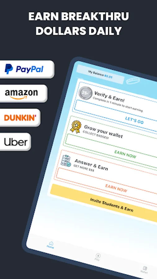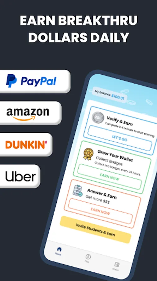 - Financial Resources and Wellness: Looking to fund your education? Earn Breakthru dollars on the app in under five minutes.